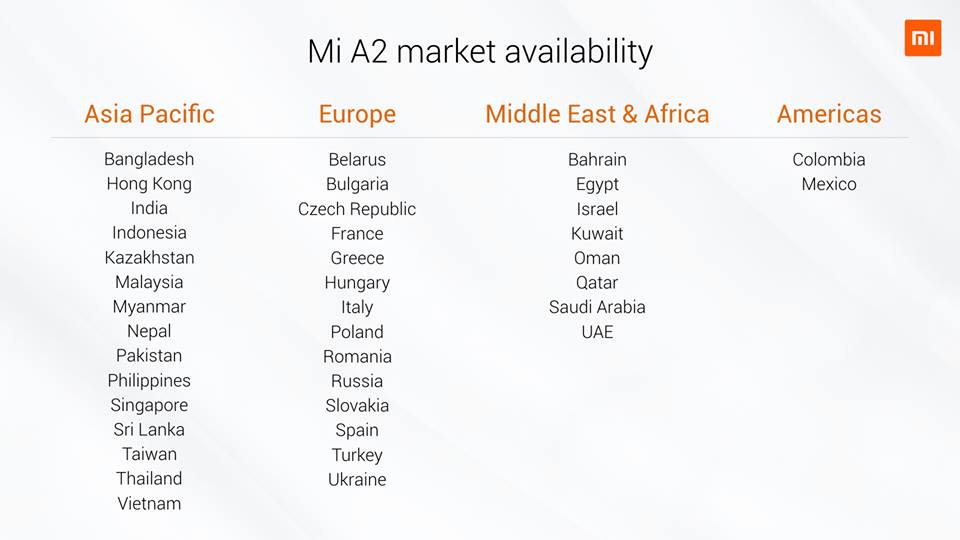 Xiaomi Mi A2 dan Mi A2 Lite – ketersediaan
